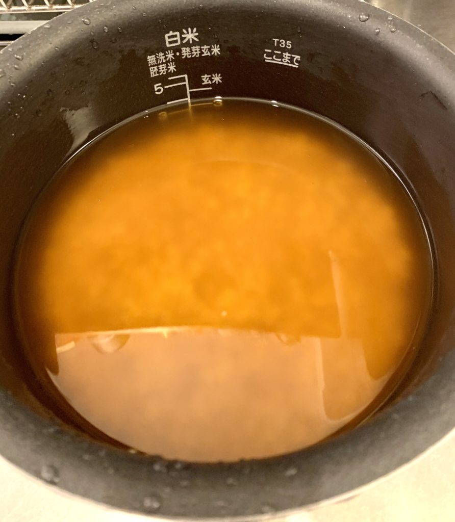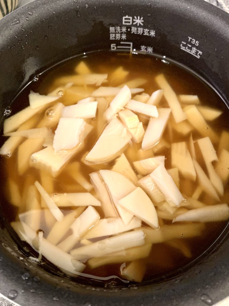 これ調味料と竹の子入るから2,5合ぐらいの水分量で良かったと思います。
