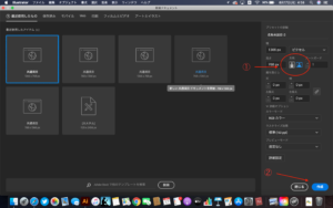 次に①でアートボードの縦向きか横向きかを決めます。そしたら②を押してアートボードを作成。