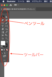 アートボードの左側にあるツールバーの中からペンツールを選びます。