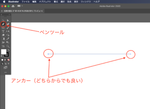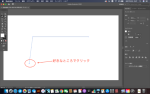 ポインターをアートボードの好きな所に置いて一度クリックするとアンカーというのが出ます。ここが始点となります。