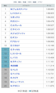 あとはメルセデスのハミルトン、ボッタスと続きアルファタウリHONDAのガスリーっすよ!